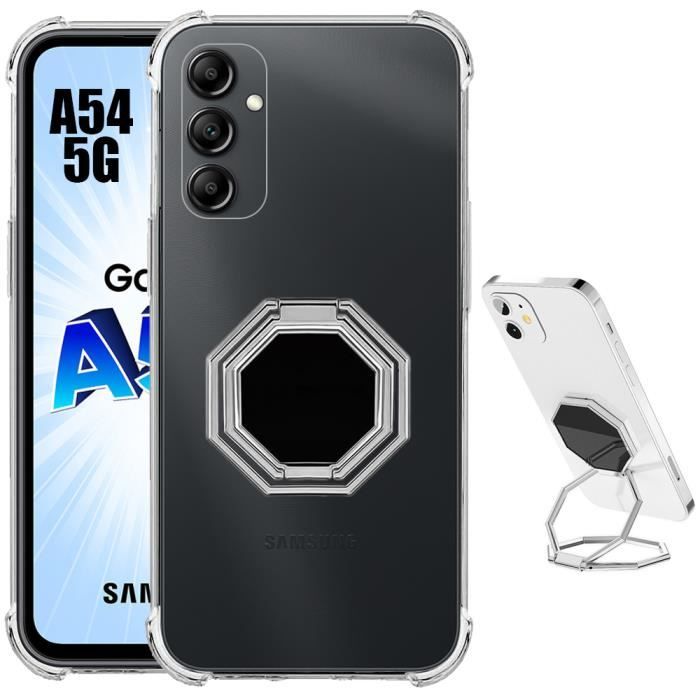 Coque pour Samsung Galaxy A54 5G Silicone Transparent avec Support Anneau Réglable Argenté