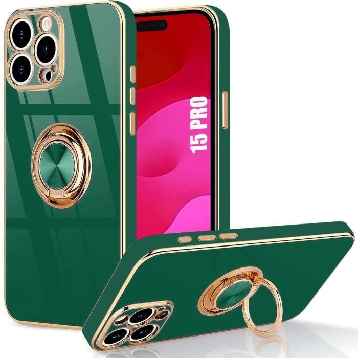 Silikonskal för iPhone 15 Pro, Repskydd Stötsäkert med Stödring Midnattsgrön