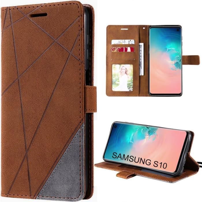 Coque pour Samsung Galaxy S10 Synthécuir Souple Marron Anti-Rayures Protection 360°
