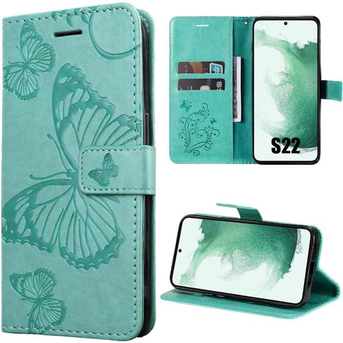 Skal - BOOLING - för Samsung Galaxy S22 - Syntetiskt läder - Grön - Fjärilsmönster