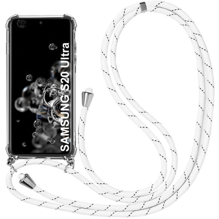 Coque - BOOLING - pour Samsung S20 Ultra - TPU Fine - Transparente - Collier Cordon Blanc