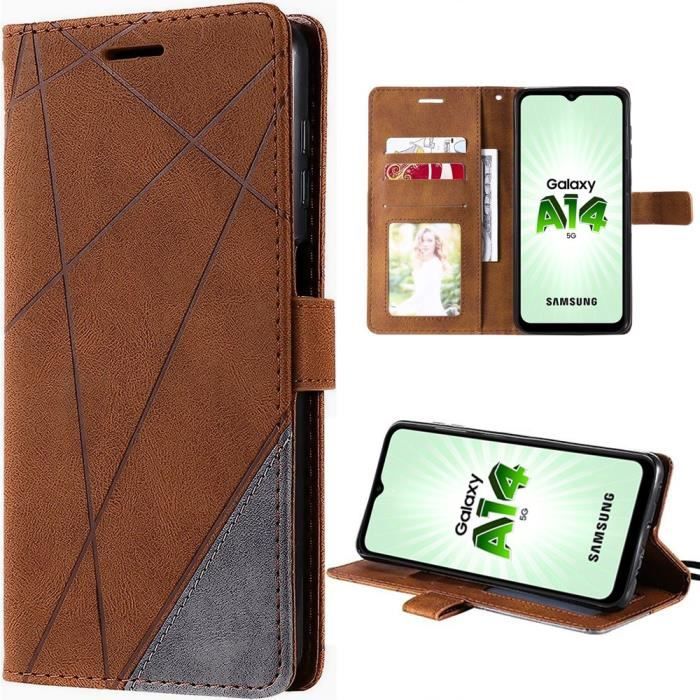 Skal för Samsung Galaxy A14 4G/5G Magnetisk Stängning Elegant Lädereffekt Brun