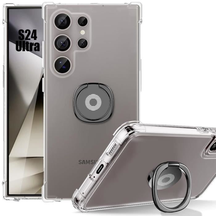 Skal för Samsung Galaxy S24 Ultra, Stötsäkert Transparent Silikonskydd med Svart Ringstöd