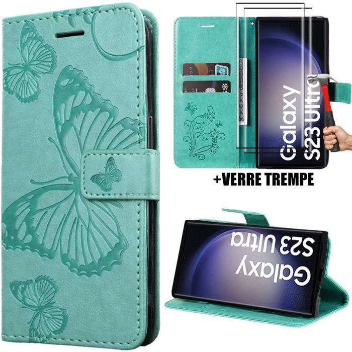 Skyddsskal - BOOLING - för Samsung Galaxy S23 Ultra - Grön - Fjärilsmönster - Magnetiskt stöd