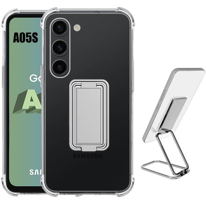 Coque pour Samsung Galaxy A05s (pas pour A05) Silicone Slim Transparent avec Support Pliable Argenté