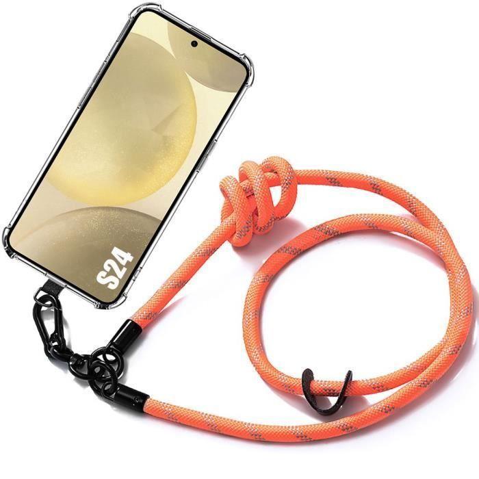 Coque de protection - BOOLING - pour Samsung Galaxy S24 - Transparent Orange - Antichoc - Cordon amovible