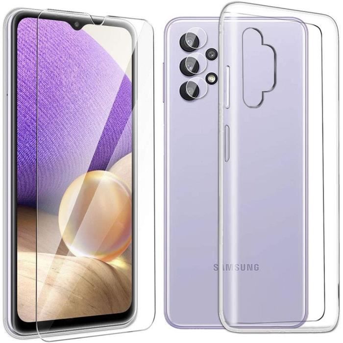 Skyddsskal - BOOLING - för Samsung Galaxy A32 5G - Transparent TPU - Inkluderar 2 Härdat glas - Flexibelt