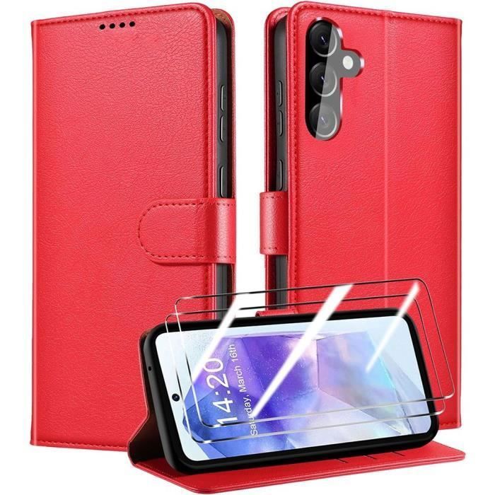 Coque de Téléphone - Booling - pour Samsung Galaxy A55 5G - Antichoc - Cuir PU - 2 Verres Trempés