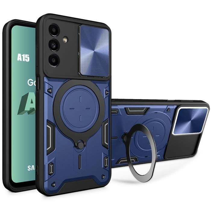 Coque Antichoc - Booling - pour Samsung Galaxy A15 4G-5G - Bleu Marine - Antichoc - Support intégré