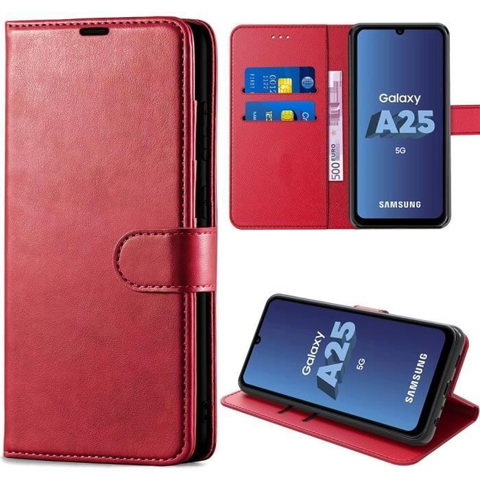 Coque de protection - Booling - pour Samsung Galaxy A25 5G - Cuir Synthétique - Folio - Rouge