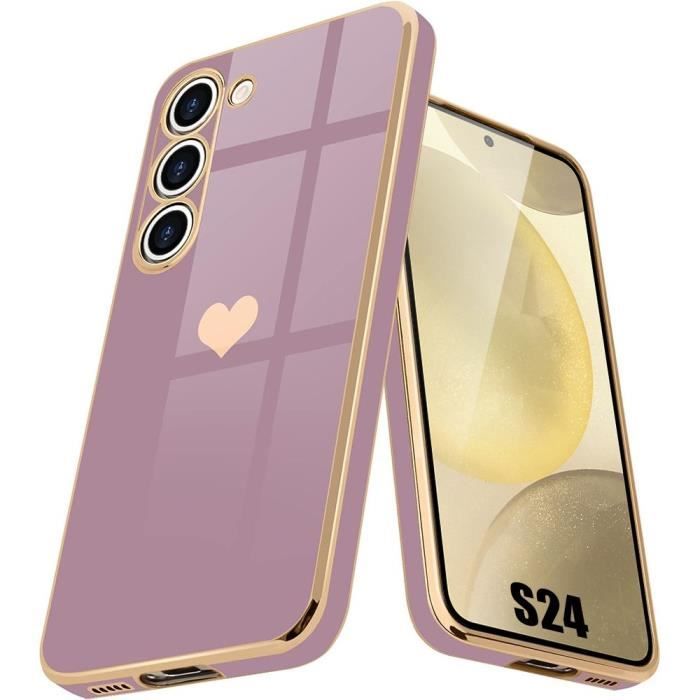 Skyddsskal - Booling - för Samsung Galaxy S24 - Silikon - Stötsäkert - Hjärtmönster - Lila