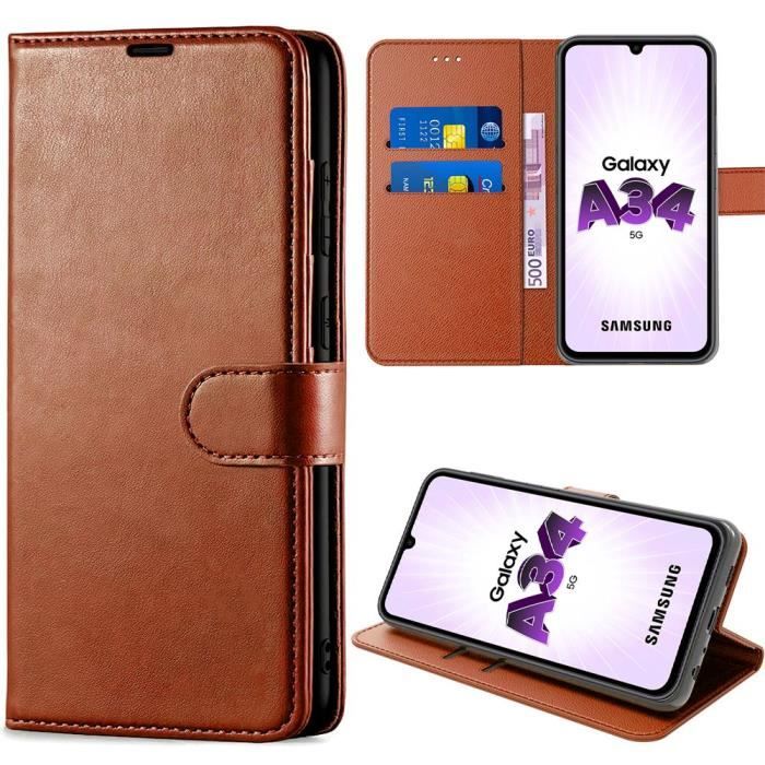 Coque pour Samsung Galaxy A34 5G Protection Cuir Synthétique Anti-Rayures - Marron
