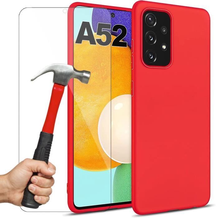 Skal och Glas - Booling - för Samsung A52 - Röd - Mjuk - Repskyddande - Glansig