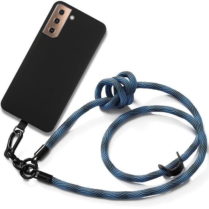 Coque Lanière pour Samsung Galaxy S21+ - S21 Plus Noir Antichoc Anti-Rayures avec Lanière Amovible Bleu