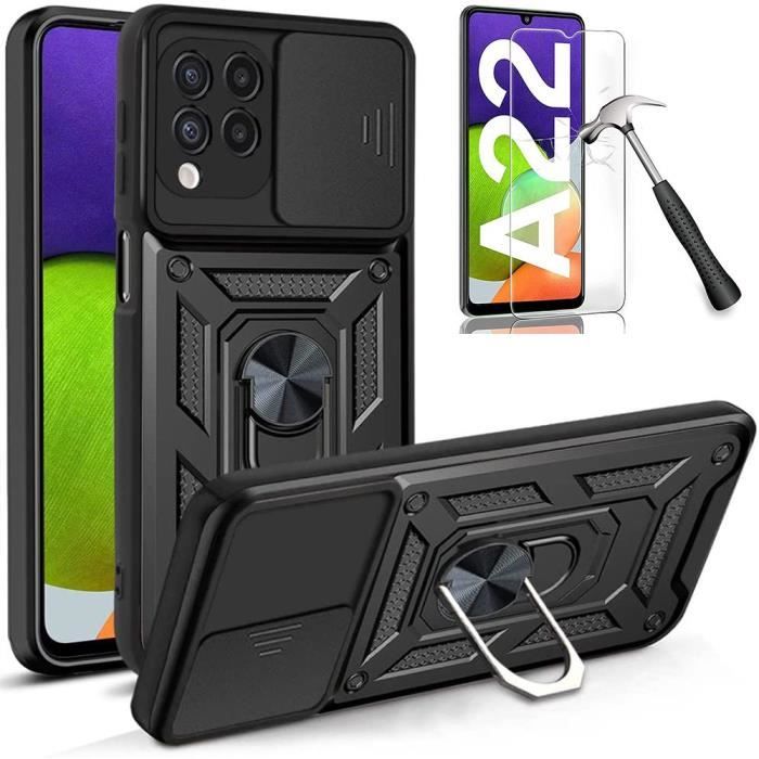 Coque de Protection - PROSHOP - pour Samsung A22 4G - Rigide - Noir - Style Armée - 2 Verres Trempés