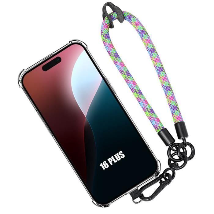 Coque pour iPhone 16 Plus - Protection Antichoc - Bracelet Multicolore Détachable - Silicone - Transparent