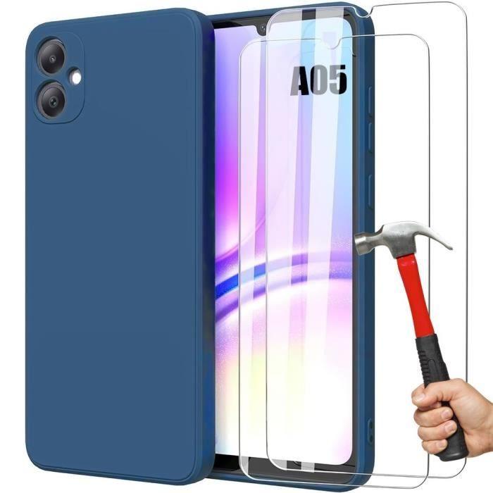 Coque + Verres Trempés - Samsung - Galaxy A05 - Silicone Liquide - Bleu Marine - Effet Mat
