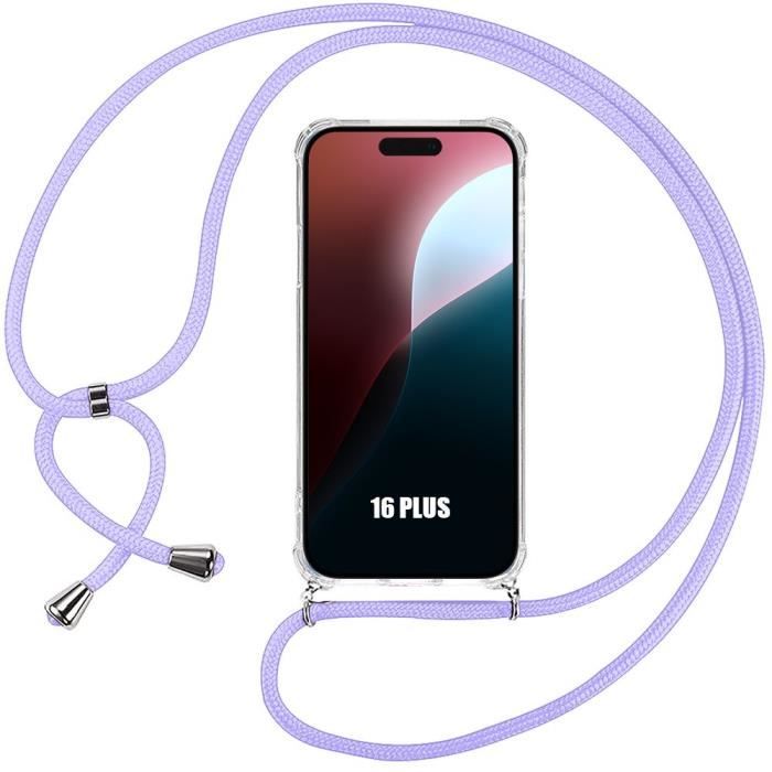 Coque pour iPhone 16 Plus - AntiChoc Renforcé Transparent avec Bandoulière Violet