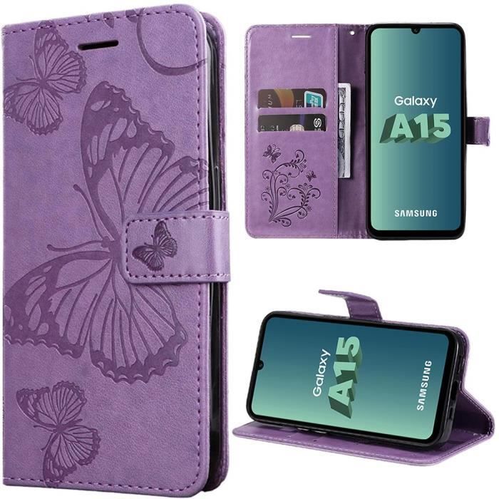 Stötsäkert skal - Booling - för Samsung Galaxy A15 - Lila - Stötsäkert - Fjärilsmönster