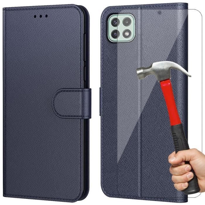 Coque de Téléphone - PROSHOP - pour Samsung A22 5G - Coque Bleu Marine - 2 Verres Trempés - Anti-rayure, Anti-choc