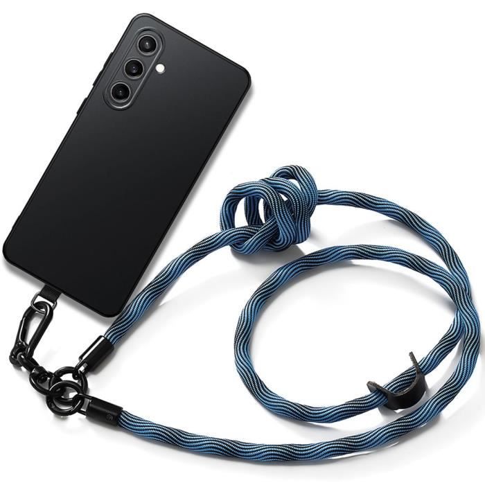 Coque - BOOLING - pour Samsung Galaxy S23 FE - Silicone Antichoc Noir - Cordon Détachable Bleu - Souple
