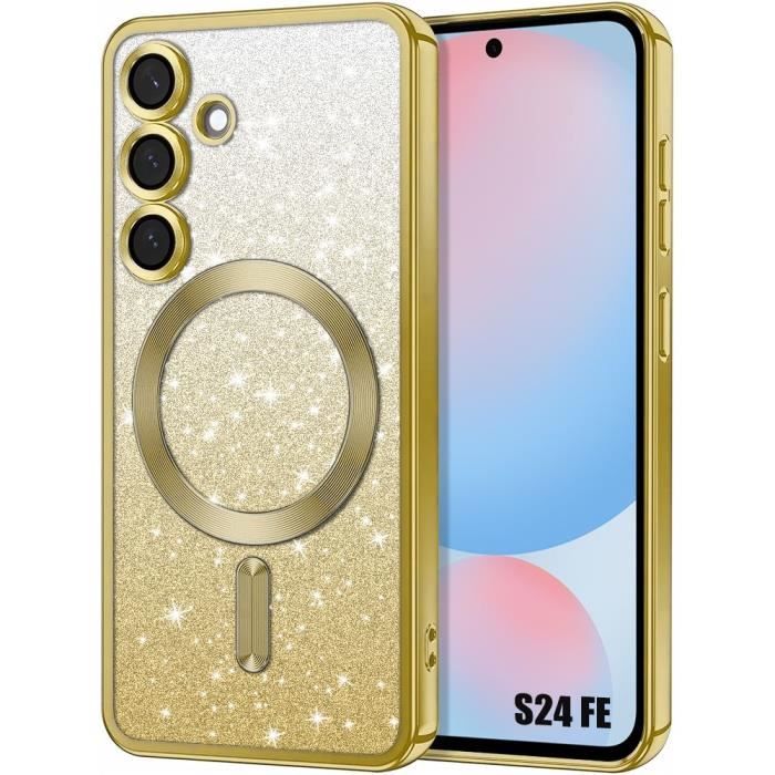 Coque de protection - BOOLING - pour Samsung Galaxy S24 FE - Silicone - Doré Pailleté - Protection caméra intégrée