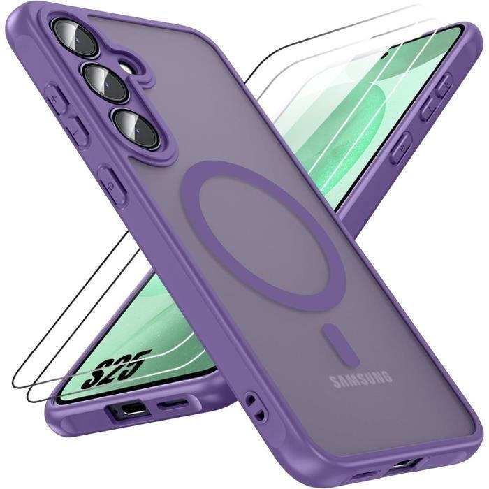 Skal - BOOLING - för Samsung Galaxy S25 - Lila - Inbyggt kameraskydd och 2 Glas
