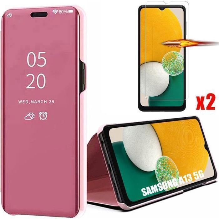 Coque Rose pour Samsung Galaxy A13 5G Effet Miroir Anti-Rayure Protection 360 Degré + 2 Verres Trempés