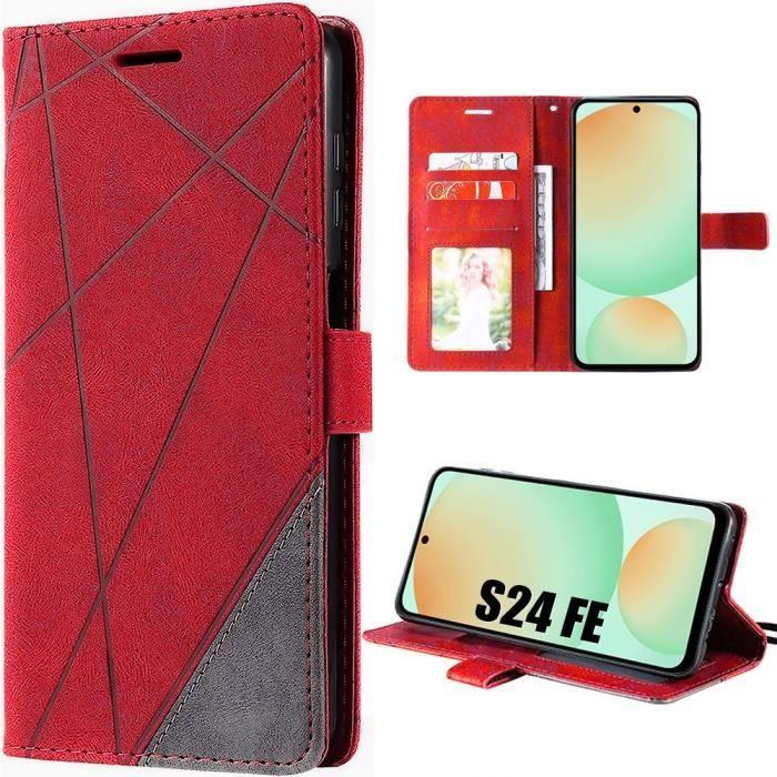 Skal för Samsung Galaxy S24 FE (passar inte S24) Repskydd Stötsäkert Skydd Syntetiskt Läder Rött