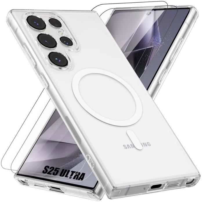 Coque Hybrid PC pour Samsung Galaxy S25 Ultra Cercle Magnétique avec 2 Verres Trempés Intégral