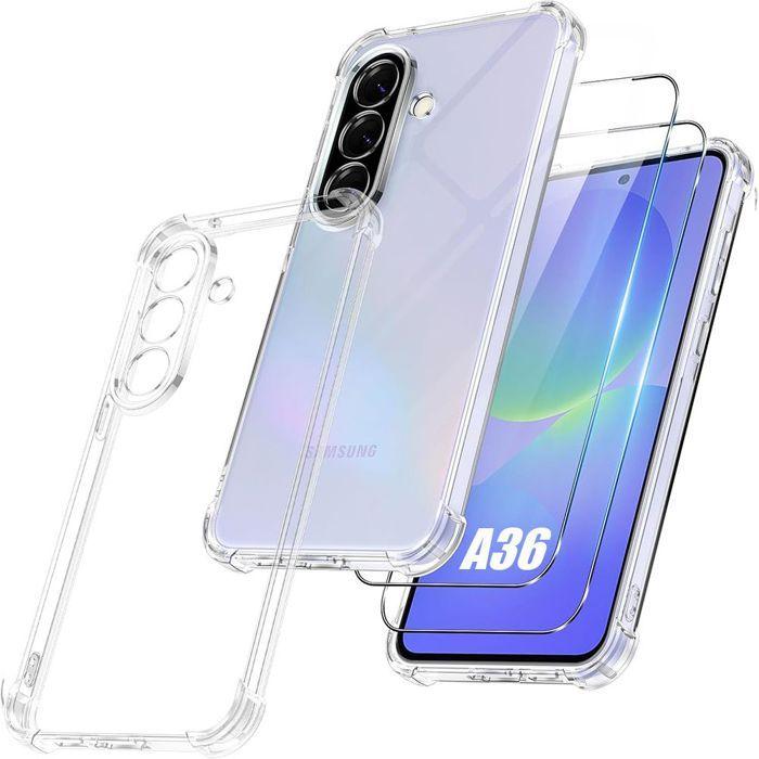 Coque pour Samsung Galaxy A36 avec 2 Verres Trempés, Protection 4 Coins Renforcés Silicone Transparent