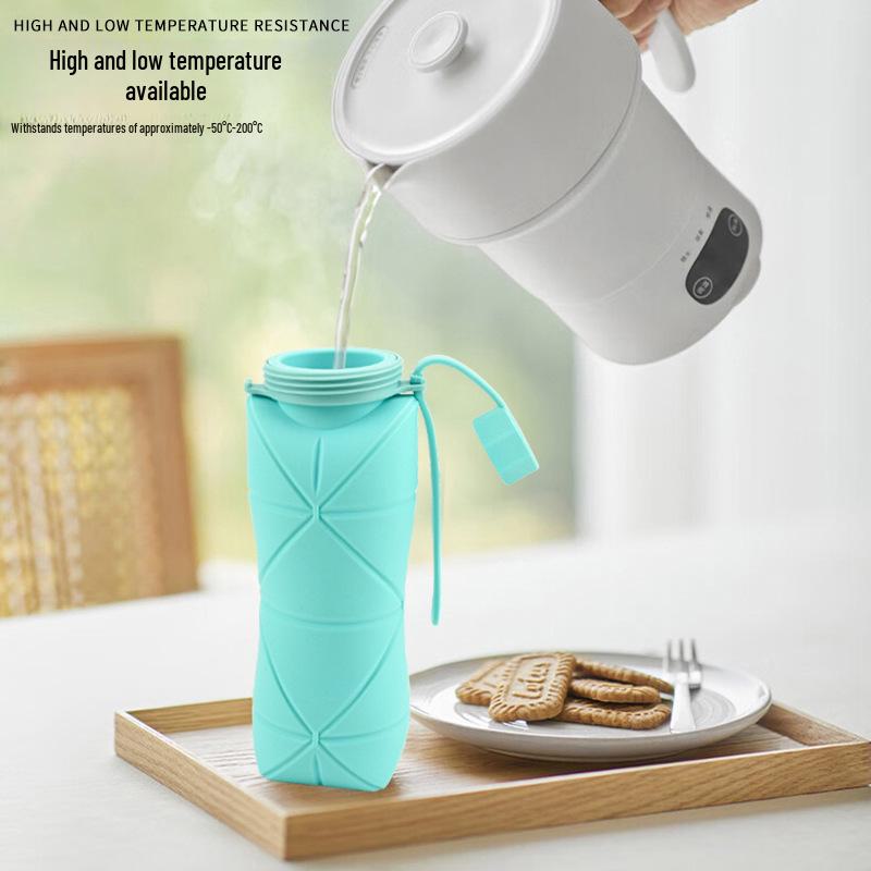 I lager vikbar silikonvattenflaska, utomhusmugg, högtemperaturbeständig, portabel och lätt att förvara sportflaska.
