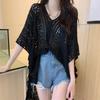 Summer Women Plus Size T-Shirt Women Knitting Bat Sleeve V-Neck Hollow Summer Style Basic Tops Tees Loose Clothing
