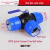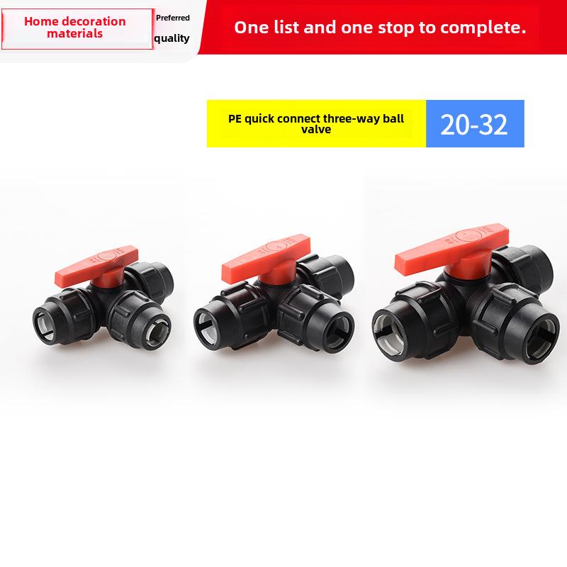 PE Kulventil Snabbkoppling Trefördelningsrörkoppling för Kranvatten, Kompatibel med 20, 25 och 32 Rör.