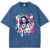 Loves You Letter Portrait Print Women's T-Shirt Washed Oversized Loose Mid Sleeve High Street Short Sleeve