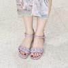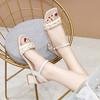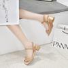 Open-toed sandals women's 2024 summer Korean version woven one-character high-heeled sandals sheepskin mid-heel fashion fairy sandals