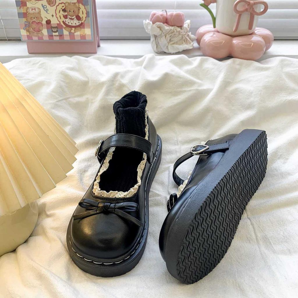 Brittisk stil rosett Lolita enkelskor japanska rund tå platt sula Mary Jane små läderskor dam 2024 vår nya modeller