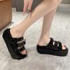 High-end metal buckle patent leather fashion muffin bread cool slippers women's summer wear thick bottom 8cm height increase one-word drag