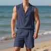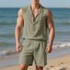 Herr Lös Casual Kragskjorta Ärmlös Shorts Set