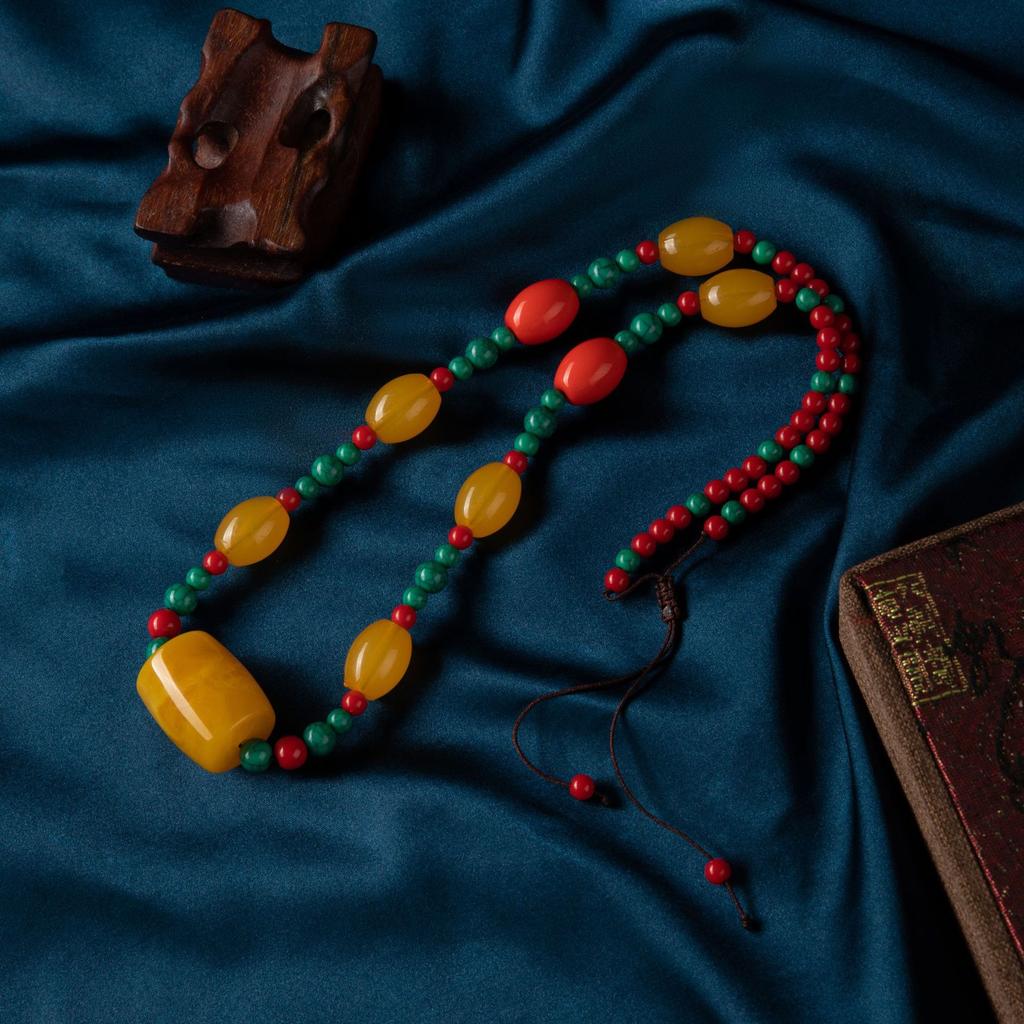 Tibetan Beeswax Long Necklace National Style Retro Beaded Sweater Chain Agate Telescopic Rope Necklace