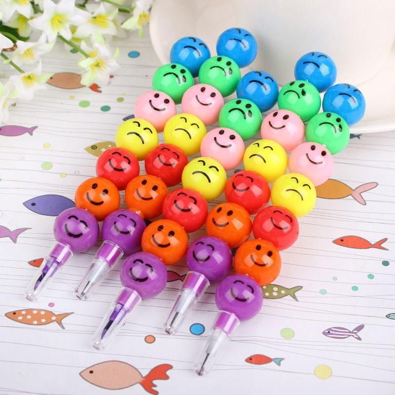 3 st Söta Roliga 7 Färger Kreativa Tecknade Smiley Graffiti Penna Staplare Bytbar Spets Vaxkrita Blyertspenna