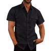 Men's Shirt, Double Pocket Cotton Linen Short Sleeved Shirt, Casual Vacation Shirt
