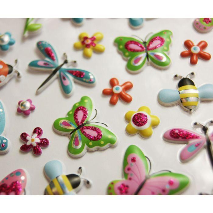 Autocollants - GLOBAL GIFT - Papillons et fleurs - Réutilisables - Relief 3D - Multicolore