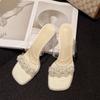 Genomskinliga sandaler dam högklackade sommar 2025 ny design moderiktiga mångsidiga kristall tjock klack utomhusskor coola tofflor