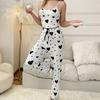 Dam Pyjamas Set Sovkläder 2 st Kort Linne Vit Ventilerande Mjuk Casual Kärlekstryck