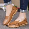 Kvinnor Plattformsskor Äkta läder Mamma Skor Snörning Justera täthet Retro Bekväm Promenad Halkfri Sko i stor storlek