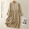 2025 spring new lapel loose meat covering cotton and linen dress women's Mori medium and long shirt skirt