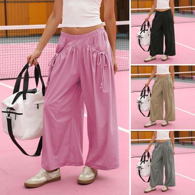 Women Summer Pants Oversized Wide-Leg Pants Elastic Waist Solid Color Loose Fit