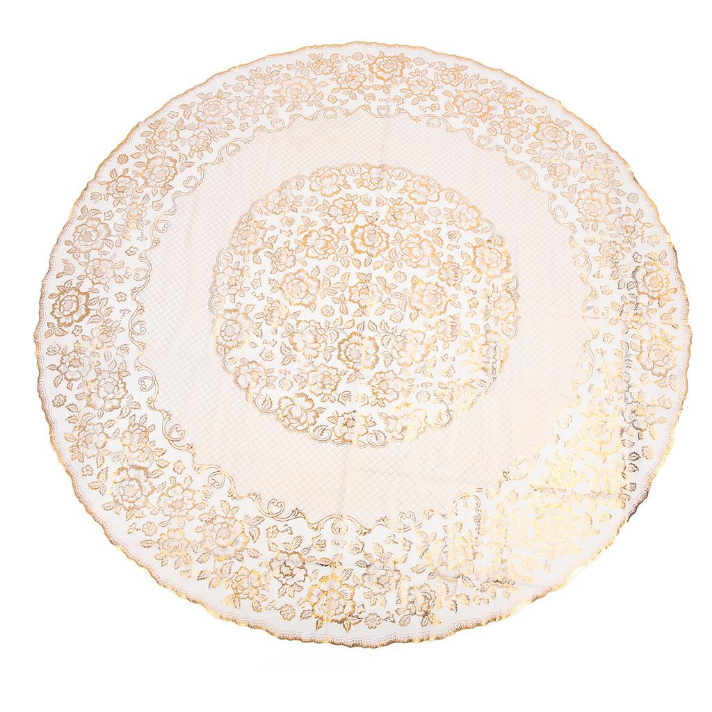 Round Tablecloth PVC Gold Stamping Waterproof Oil Proof Stain Resistant Wipeable Decorative Table