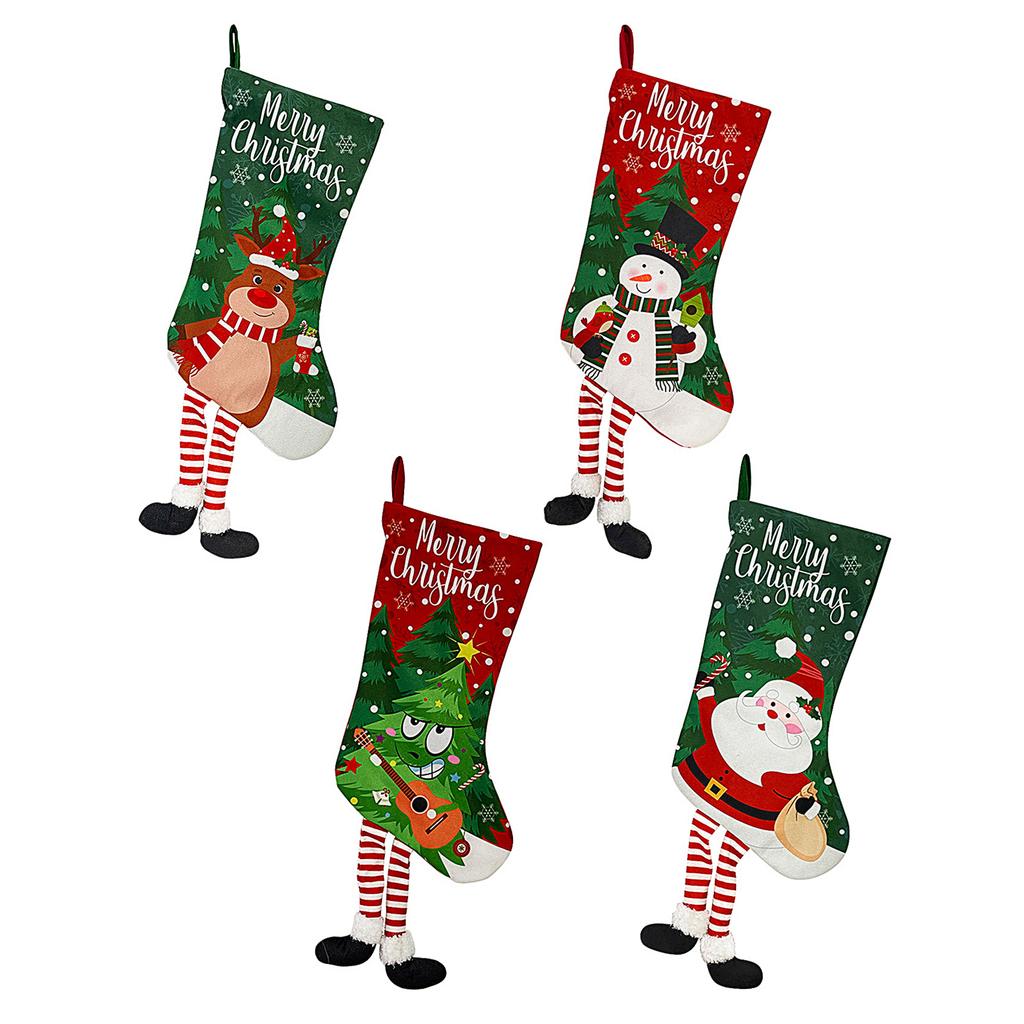 4 st Julstrumpor Bekväma Söta Tecknade Älg Gammal Man Julgran Snögubbe Dekorativa Strumpor för Jul